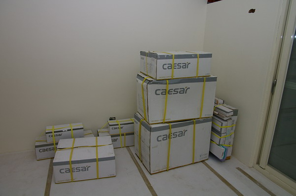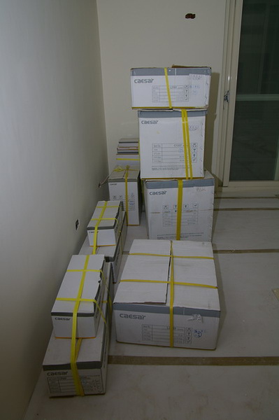 衛浴的馬桶, 臉盆, 鏡子與配件進料了